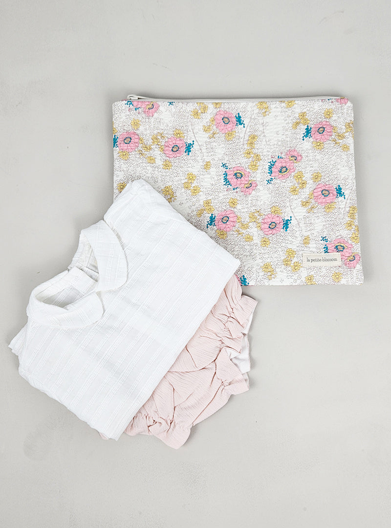 Mantén la ropa de recambio siempre lista con nuestra práctica bolsa para muda. Su tamaño es perfecto para llevar varias prendas, y su cierre con cremallera asegura que todo permanezca protegido y en su lugar.