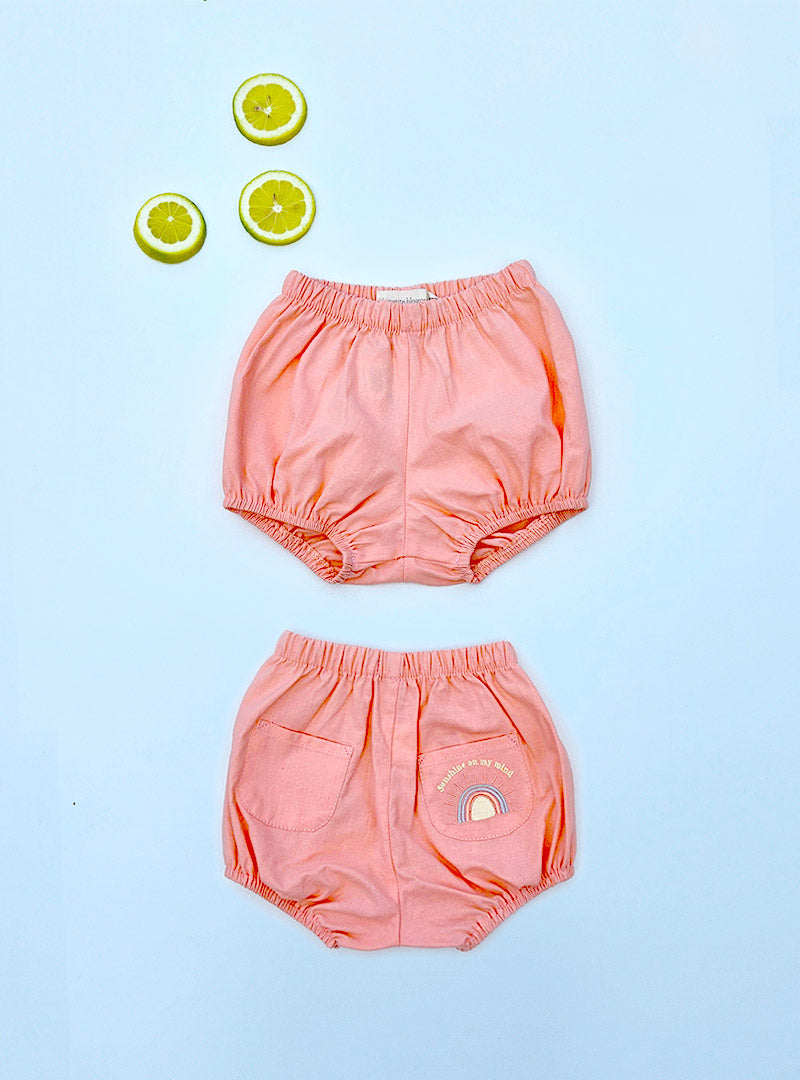 Bombacho de algodón en color naranja. Bolsillos en el trasero y bordado de colores.
