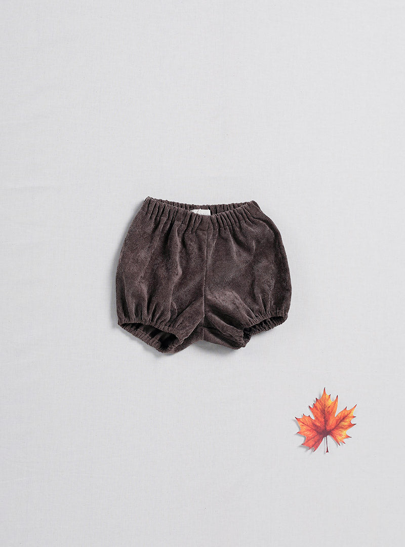 Short bombacho de pana en color marrón con bolsillitos en la parte trasera.