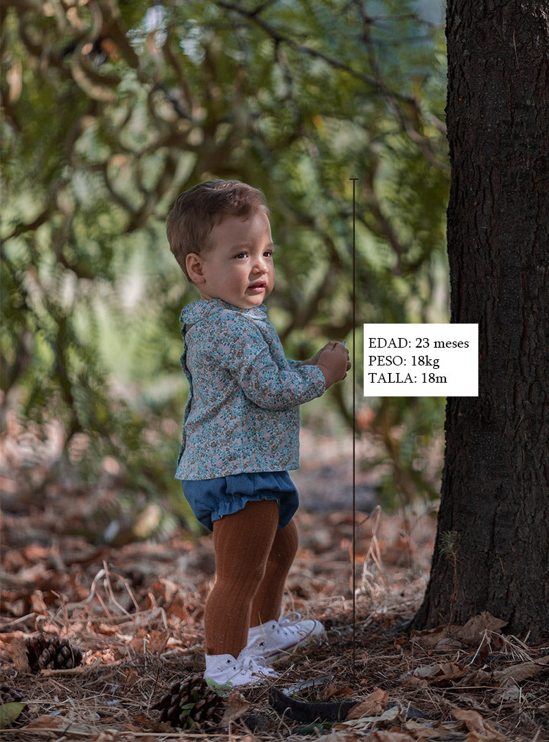 *Nuestro bebé modelo pesa 12kg/17 meses y lleva 18m de camisa y talla 9/12m de pololo.