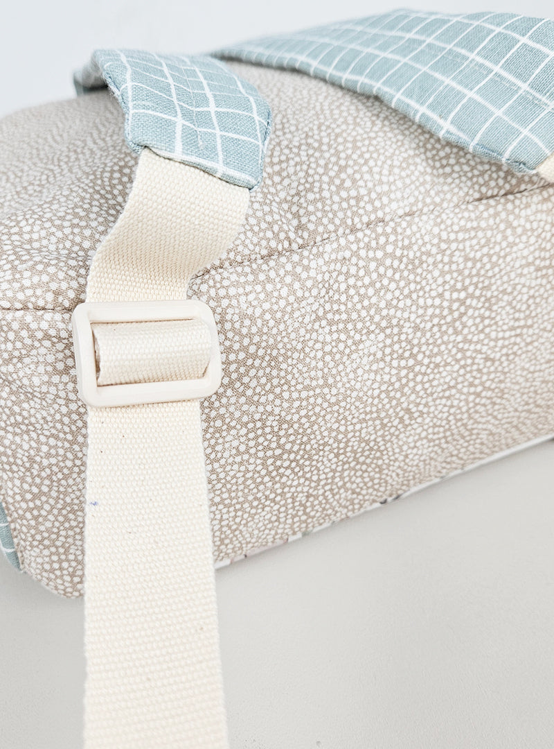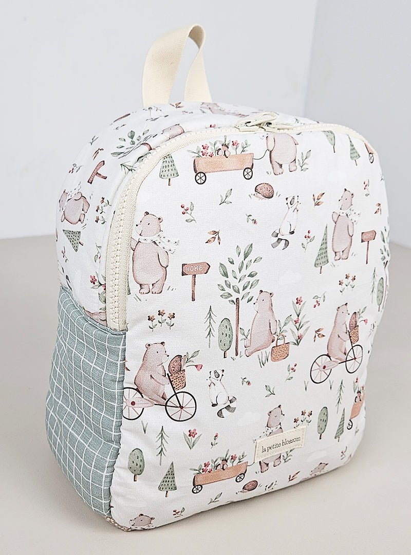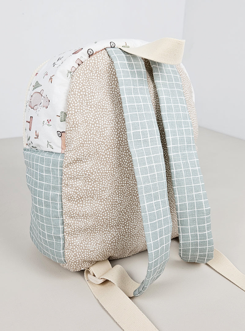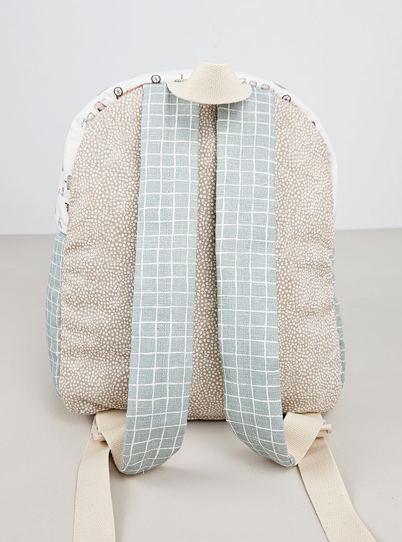 Mochila de algodón acolchada. Cuenta con asas ajustables que se adaptan al crecimiento del niño. Su interior es impermeable para proteger el contenido de posibles derrames o humedad. Perfecta para la guardería, paseos o pequeñas aventuras diarias.