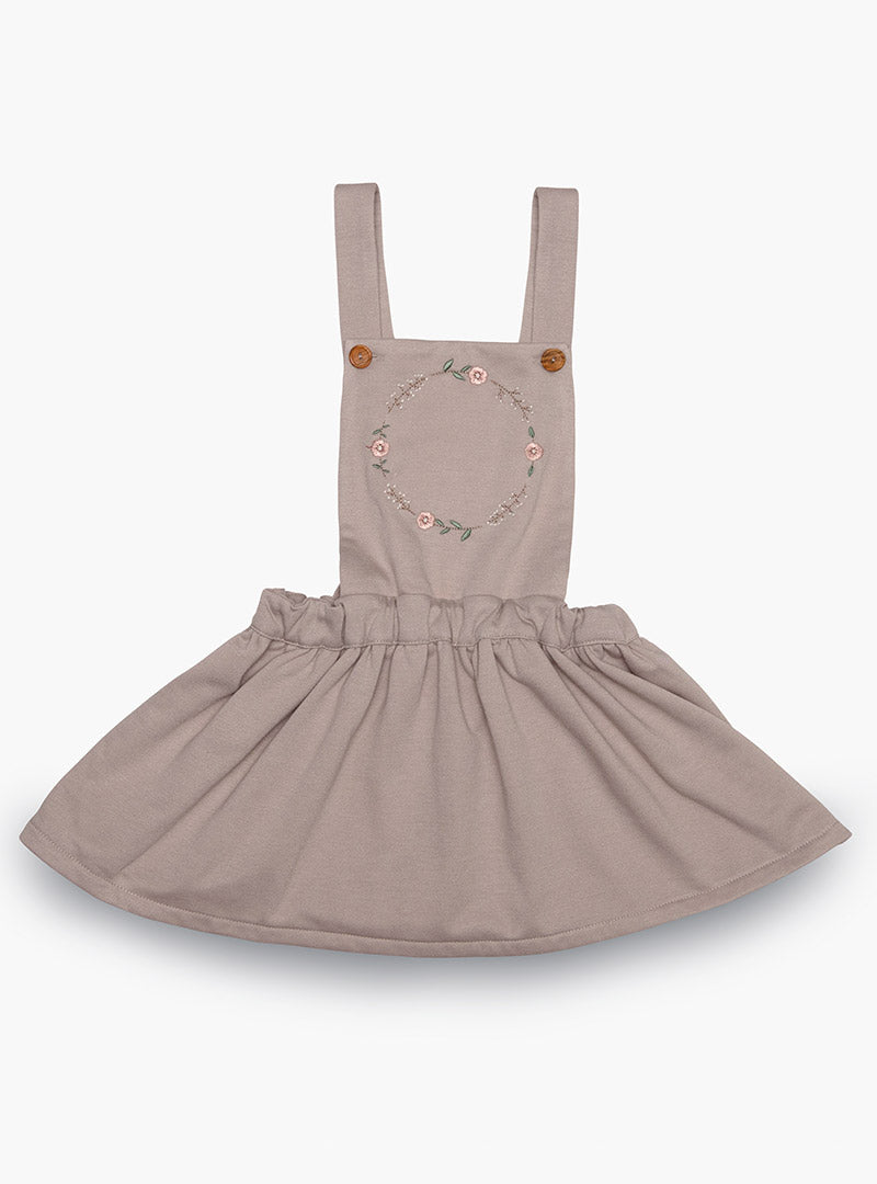 Pichi de jogging con interior afelpado. Color tostado con un bordado de flores en el delantero.