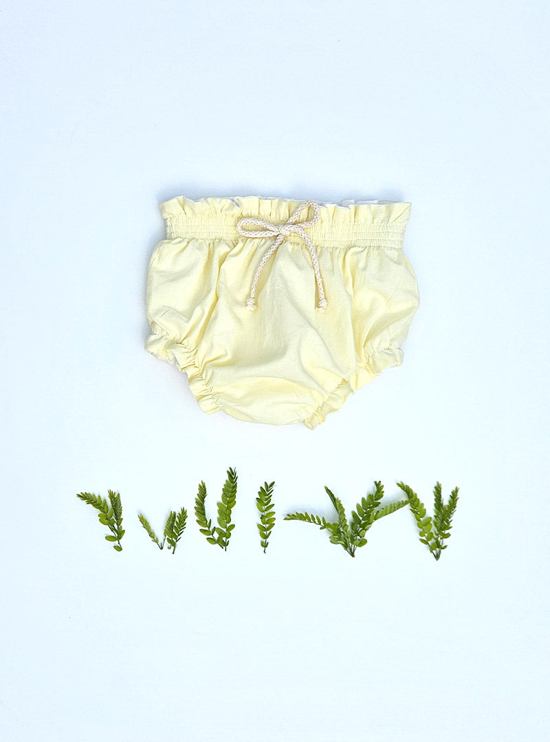 Pololo de color amarillo pastel con detalles de cordón crudo decorativo delante. Va forrado.