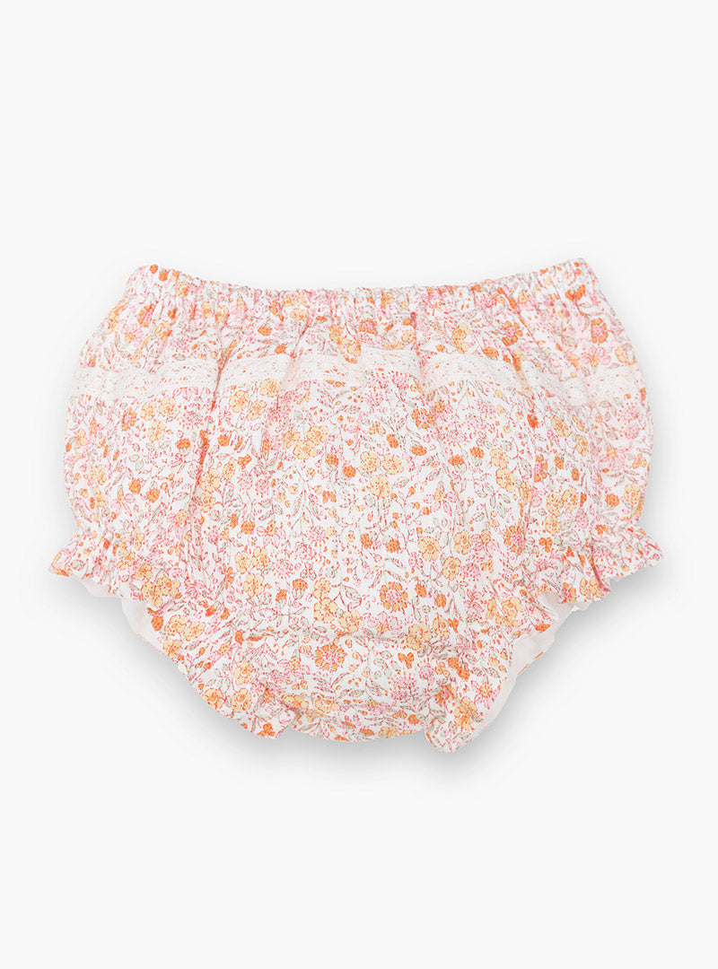 Pololo de bambula en flores anaranjadas con detalles de puntilla de algodón. Van forrados.