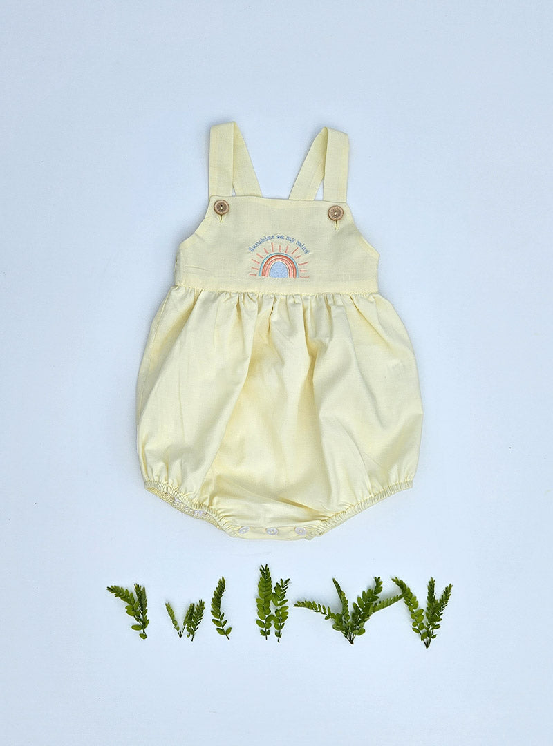Ranita de color amarillo pastel con bordado de colores delante. Va forrada.
