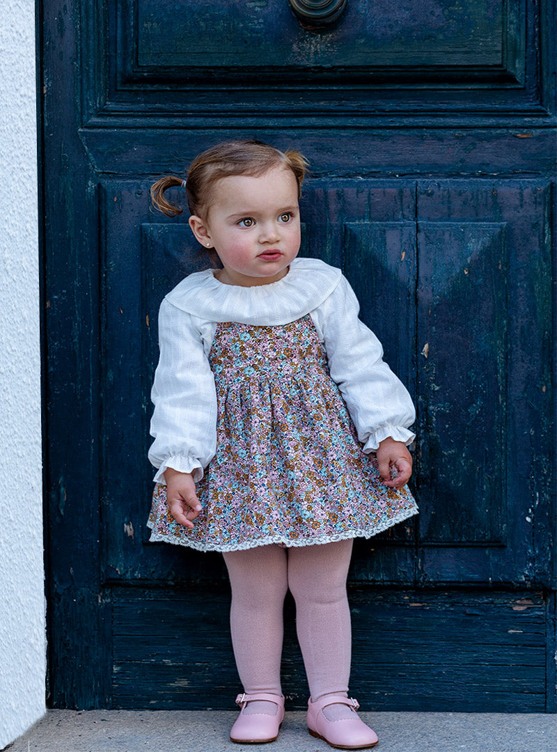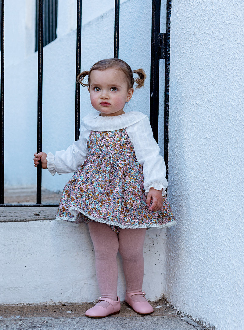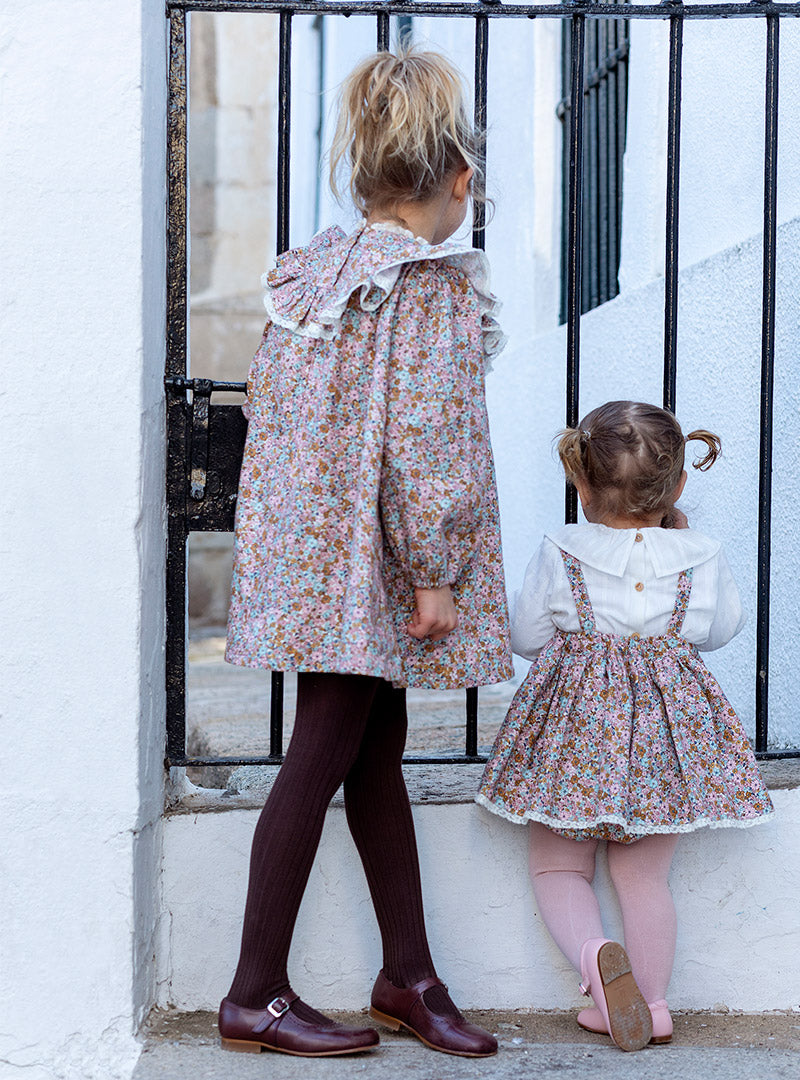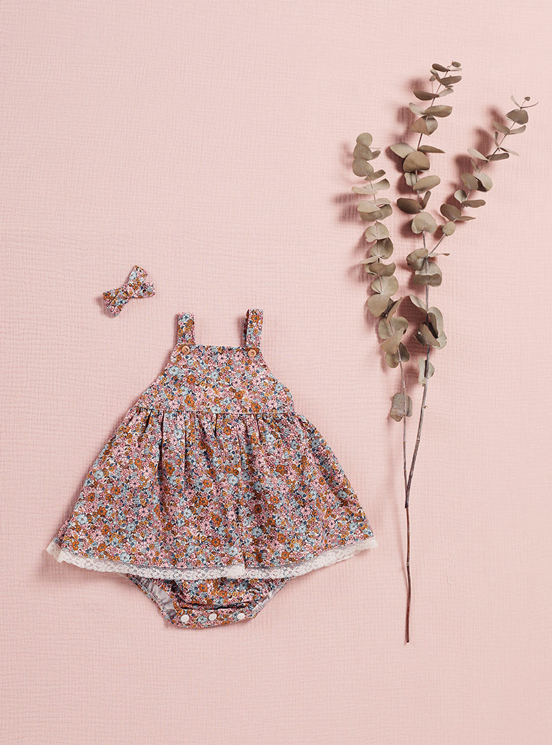 Ranita estampada de flores con tirantes. La espalda lleva goma elástica para ajustar. Abotonada abajo. Forrada.