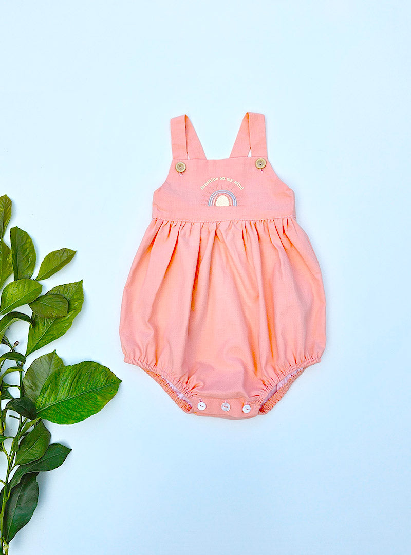 Ranita de color naranja en tejido de algodón. En la espalda hay una cinturilla que lleva goma elástica.